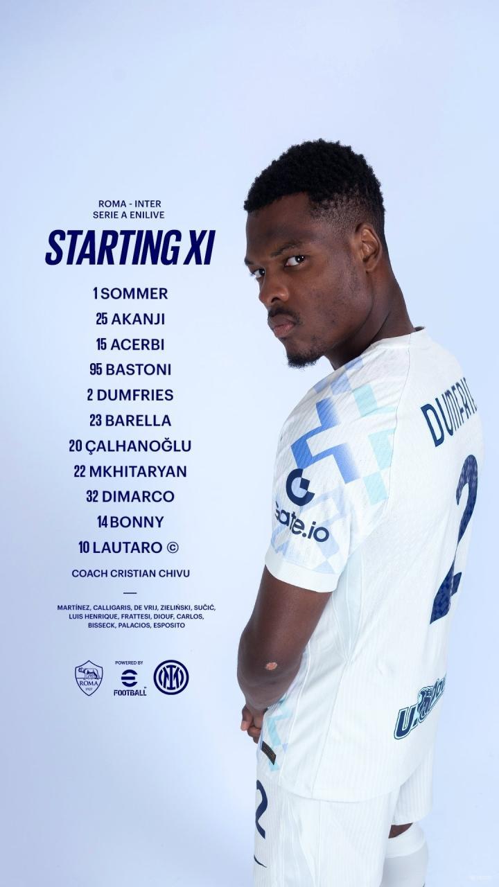 国米首发名单:1号门将索默(瑞士来的,听说扑点球有独门秘籍)、25号阿坎吉(瑞士中卫,不知道能不能防住迪巴拉的任意球)、15号阿切尔比(意大利老将,经验比皱纹还多)、95号巴斯托尼(意大利新星,听说头球能当炮弹使)、2号邓弗里斯(荷兰边翼,跑起来像推土机)、23号巴雷拉(意大利中场,传球比导航还准)、20号恰尔汗奥卢(土耳其核心,任意球能当点球踢)、22号姆希塔良(亚美尼亚老将,经验能写成一本书)、32号迪马尔科(意大利本土,听说边路传中能拐弯)、14号博尼(阿根廷来的,不知道能不能适应意大利的防守强度)、10号劳塔罗(阿根廷射手,听说射门能穿针引线)